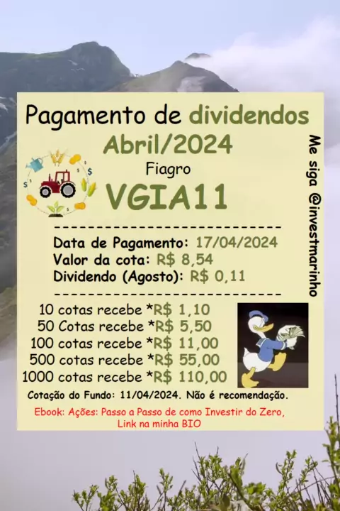 Dividendos a serem pagos em Abril de 2024 do fiagros VGIA11. #investimentos