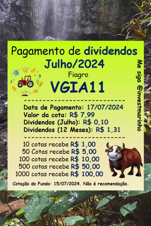 Dividendos a serem pagos pelo fiagro VGIA11. #liberdadefinanceira #dinheiro #investimentos #rendapassiva #CaixaSurpresaDeFutebol