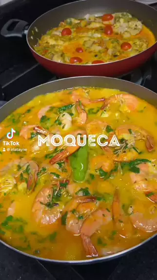MOQUECA - 500g de peixe fresco - 300g de camarão com casca - Cebola, pimentões coloridos, tomates, coentro, pimenta de cheiro. - limão, alho, sal e pimenta - 300ml de leite de coco - azeite de dendê #moqueca #moquecabaiana #comidanordestina #1212kwaishop #camarão