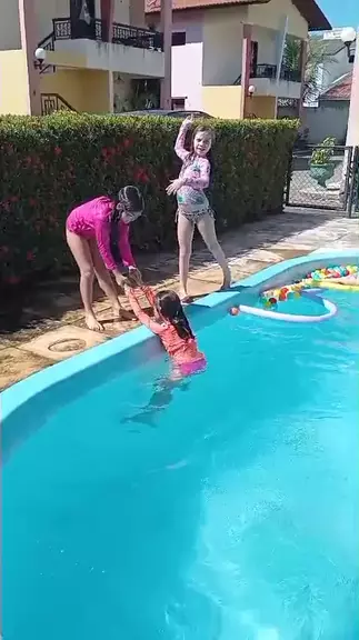 Lia e Laurinha na Piscina com as amigas #irmasliaelaura #banho #Piscina #crianças #kids