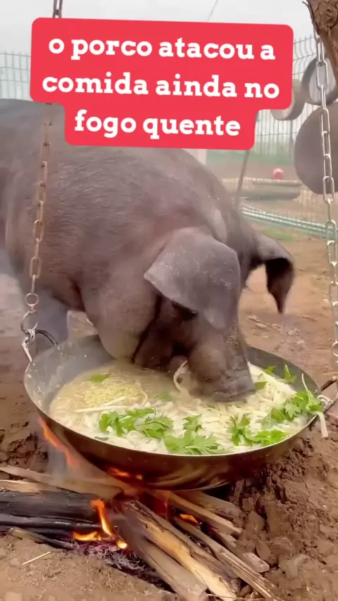 o porco atacou a comida no fogo #mukbang #Food #Comer