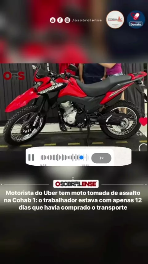 Na tarde de hoje (14), um trabalhador do Uber passou por uma experiência traumática em Sobral, quando teve sua moto de placa: HTH4I88, Honda Bros, modelo 2025, tomada de assalto na COHAB 1, em um dos pontos mais movimentados da cidade, na rua Caetano Figueiredo, ao lado do antigo Clube BNB. O jovem havia adquirido a motocicleta apenas 12 dias antes, em uma tentativa de melhorar suas condições de trabalho e prover para sua família. A abordagem foi brutal. Dois criminosos, usando de extrema violê