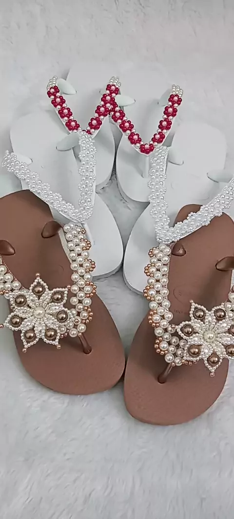- Havaianas com bordado de pérolas; - Extremamente elegante; - Muito conforto; - Vá de chinelo!! #havaianas #luxo #elegante