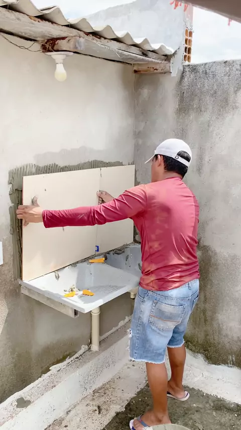 Como assentar porcelanato em pia, rápido e fácil 😂😂#funny