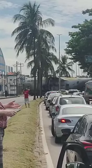 Estrada do Galeão fechada. Um avião da FAB (HÉRCULES C-130) atravessou as 2 pistas e arrebentou o muro do Aeroporto do Galeão. #viral #sejaumcriador #kwai #kwai🙅✅