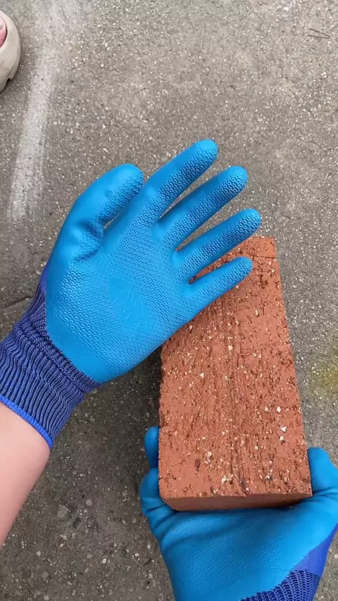 Luvas de proteção trabalhista que podem ser usadas com tijolos.