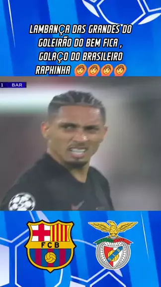 LAMBANÇA DAS GRANDES DO GOLEIRÃO DO BEM FICA , GOLAÇO DO BRASILEIRO RAPHINHA 🙆#championsleague #benficaxbarcelona #esporteviral #kwaiesportes #viraliza