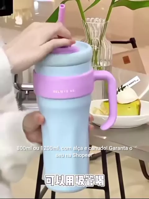 Dê uma olhada em Copo Térmico com Canudo de Aço Inox 1200ml/800ml com Alça Térmica Fitness com Tampa 2 Funções por R$50,99 - R$65,99. Compre na Shopee agora! #copo #cozinha #festa