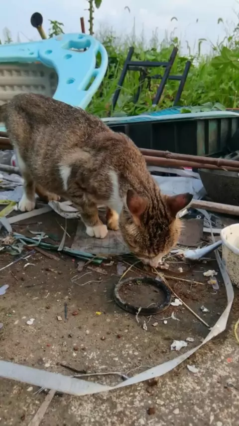Memancing dan memberi makan kucing liar, tidak ada cukup untuk makan.