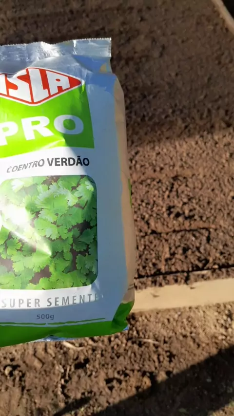 sameando um canteiro de coentro.