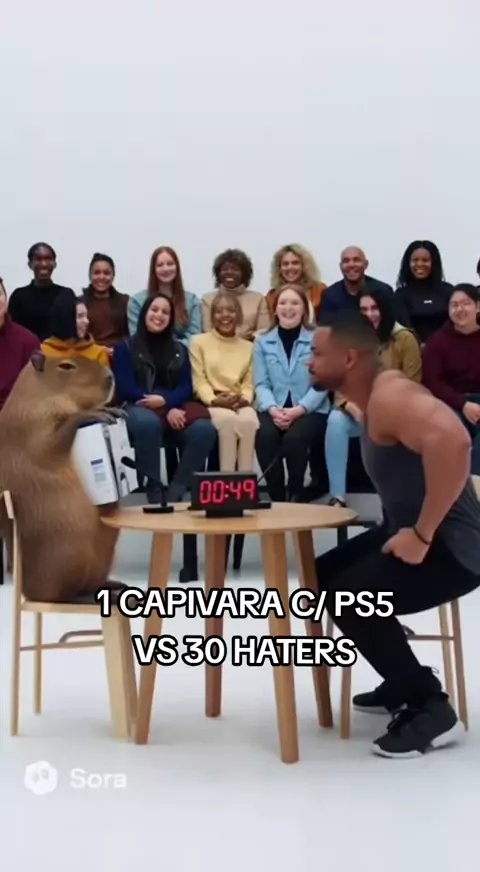 1 capivara com PS5 X 30 Haters #capivara #sora2 #sora #chatgpt #inteligênciaartificial meme capivara ps5 prompt sora ia veo 3 gemini 30 X 1