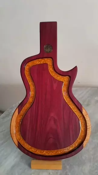 Em formato de guitarra na madeira Roxinho com resina e pigmento ouro perolado nas canaletas. siga-me pra acompanhar o meu trabalho! #johnf_woodoficial #woodworking #viral #arte #artesanal