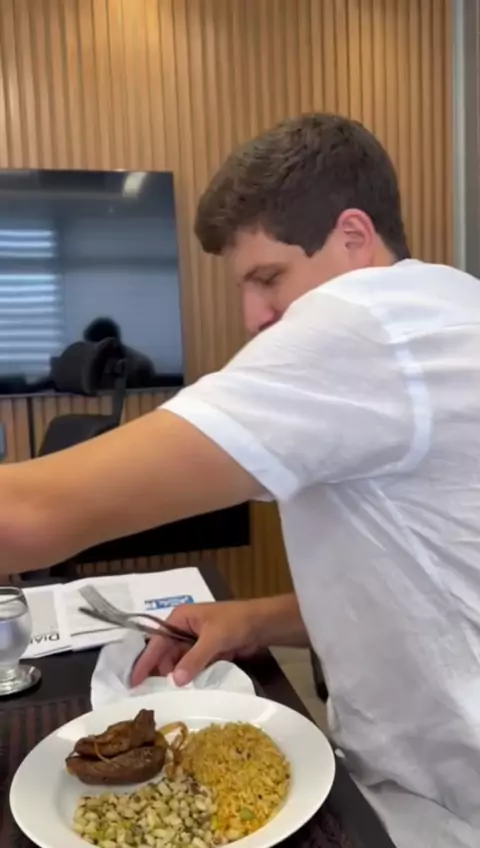 Depois de um anúncio desses da Virada 2024 do Recife, uns minutinhos pro almoço! Feijãozinho, arroz, uma carninha 🍛 e água pra dar aquela hidratada. No fim, ainda tem o cafezinho que aí a gente não dispensa, não ☕. Cuida!