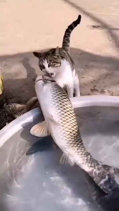 #gato pegando um peixe #será que consegue comer o peixe #lindo gatinho!