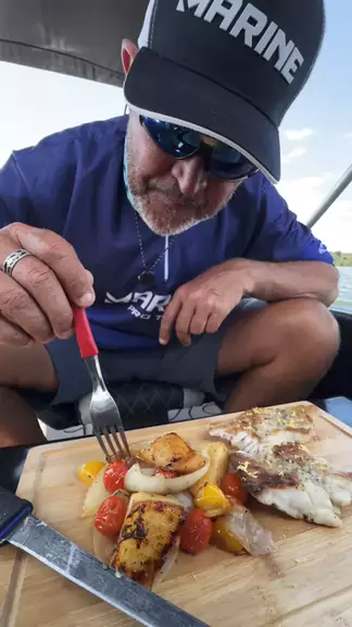 SEGUNDA GRELHADA DO PESCADOR! Faca Fileteira @marine.fishing Fogareiro @kala.brasil Geladeira @resfriar.oficial Barco @xboatsbr #pescaria #johnnyhoffmannoficial #Comida
