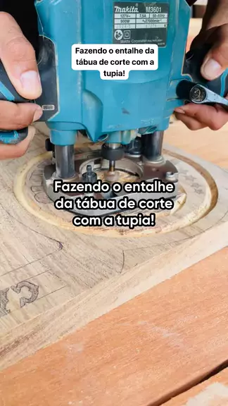 Fazendo o entalhe da tábua de corte com a tupia!