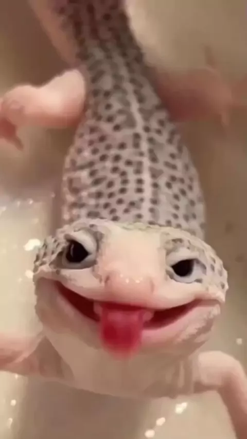 A lagartixa-leopardo têm uma personalidade alegre e faz movimentos interessantes que parece com um sorriso. : #lagartixa #reptil #videosincriveis #kwai