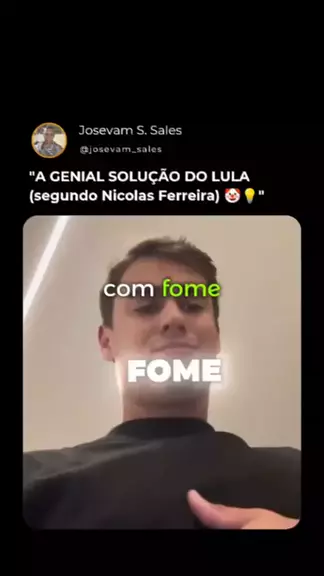 "A GENIAL SOLUÇÃO DO LULA (segundo Nicolas Ferreira) 🤡💡" Legenda: Se a comida tá cara, é só passar fome. Se a gasolina tá cara, é só ir a pé. Se a conta de luz tá alta, viva no escuro! 💀💰 Nicolas Ferreira traduz a "brilhante" lógica do Lula. Concorda? 😂👇 #NicolasFerreira #Lula #Sátira #Ironia #ComédiaPolítica