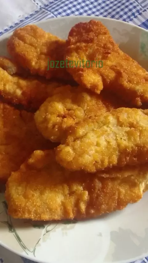 Filé de merluza a milanesa ingredientes alho, pimenta do reino, sal e tempero Ana Maria 1 ovo Filé de merluza farinha de trigo farinha de rosca #ValeuMãeKwai #vamosflamengo #sosriograndedosul #boracomer #peixe