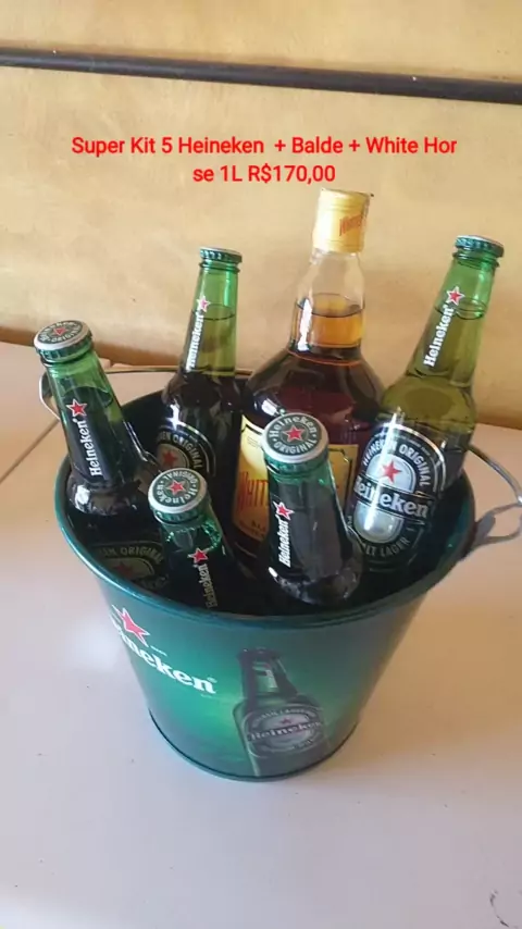 5 Heineken + Balde + Whisky White Horse 1L R$170,00 Add 1 RedBull R$177,00