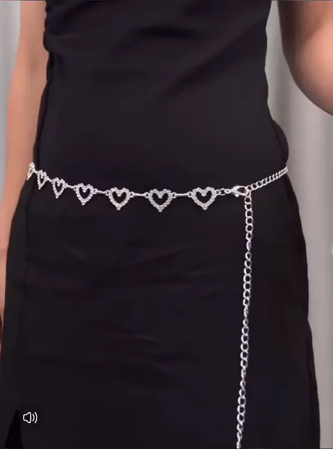 Moda Novo cinto feminino em formato de coração com corrente de diamantes