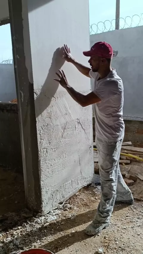 reconstrução de uma parede de gesso que não foi acabada