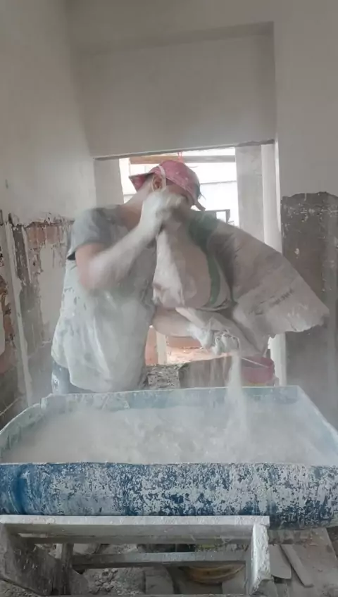 gesseiro preparado uma massa de gesso no caixote