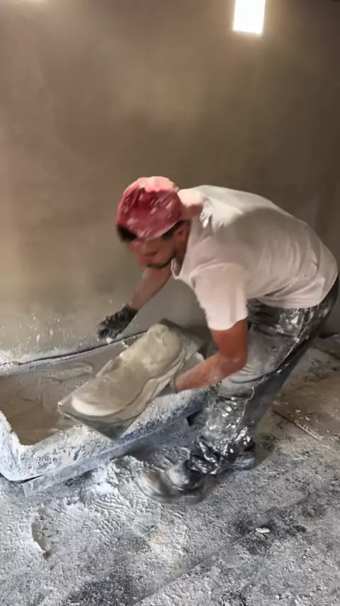Gesseiro aplicando o gesso no teto