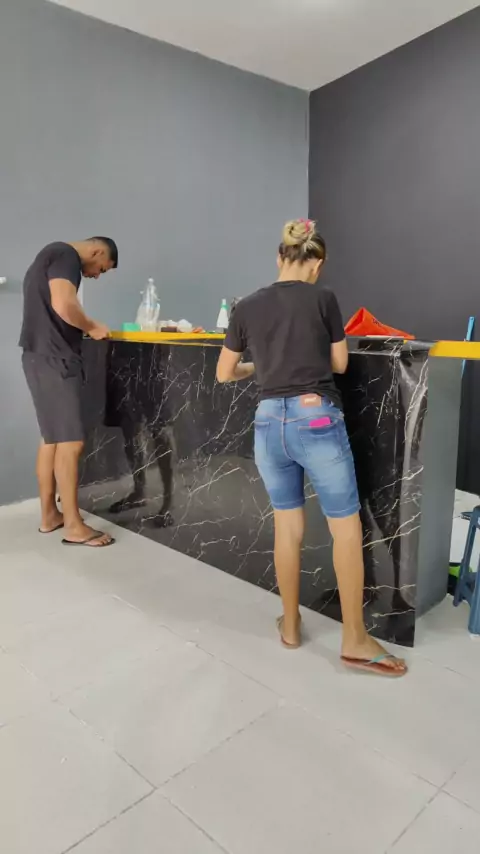 Revestindo o balcão com a película para parede Altak