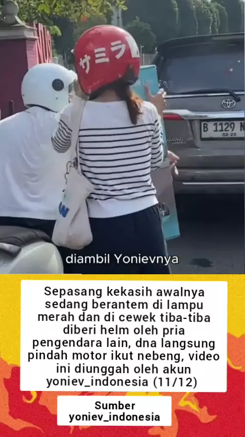 aksi seorang pria beri helm ke wanita lain #news