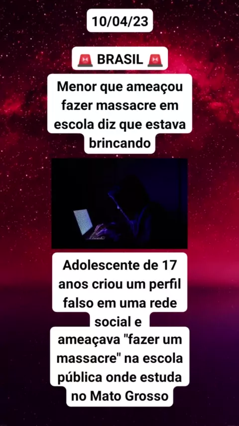 Menor que ameaçou fazer massacre em escola diz que estava brincando #EstrelaDeFamília #Notícia #noticias #ultimasnoticias