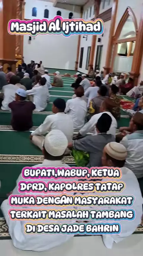 BUPATI BANGKA FERI INSANI WABUP SYAHBUDIN BUPATI BANGKA BERSAMA WABUP DAN KAPOLRES GELAR PERTEMJAN DENGAN WARGA DI MASJID AL IJTIHAD TERKAIT MASALAH TAMBANG DI DESA JADE BAHRIN##BANGKA HARMONI