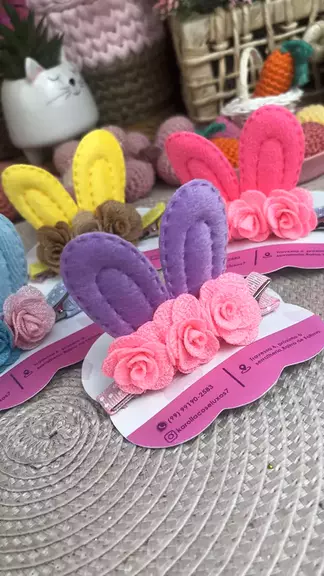 Orelhinhas de Páscoa 🐰 #pascoa #laço #laceiras #artesanato #artesa