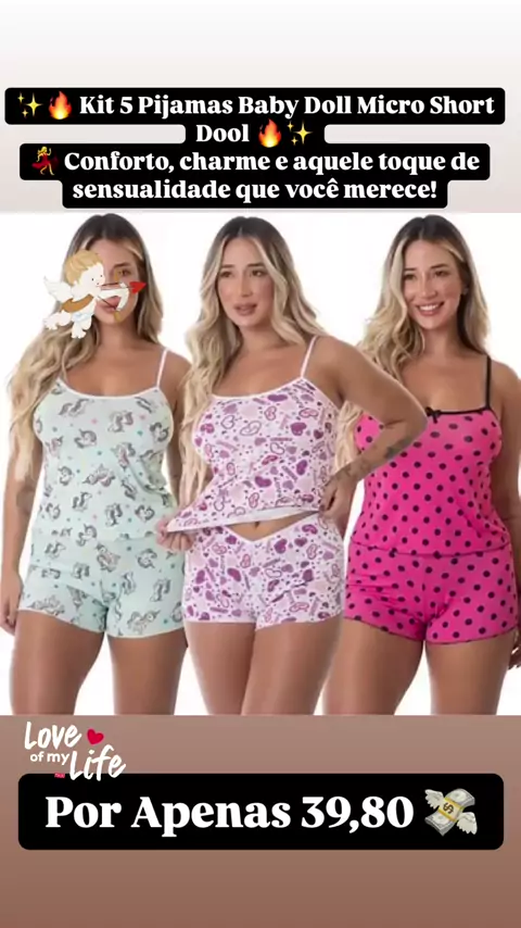 ✨🔥 Kit 5 Pijamas Baby Doll Micro Short Dool 🔥✨ 💃 Conforto, charme e aquele toque de sensualidade que você merece! ✅ Tecido leve e fresquinho ✅ Modelagem que valoriza o corpo ✅ 5 peças por APENAS R$ 39,98 😍💥 🔥 Não perca essa oportunidade de renovar suas noites com estilo! 🌙 Tamanhos do P ao GG | Envio para todo Brasil 💬 Comente abaixo "EU QUERO" que enviamos o link direto para você! Ou COMPRE JÁ no link de OFERTAS localizado no perfil ou Chame no DIRECT 💌 e garanta o seu antes que ac