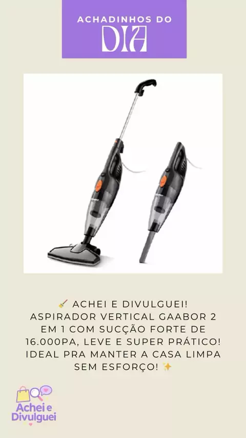 🧹 Achei e divulguei! Aspirador Vertical Gaabor 2 em 1 com sucção forte de 16.000Pa, leve e super prático! Ideal pra manter a casa limpa sem esforço! ✨ 🔗 Link pra comprar 👇🏻 https://s.shopee.com.br/6KtPLd4oSd #AcheiEDivulguei #AchadinhosShopee #aspiradordepó #casalimpa #gaabor