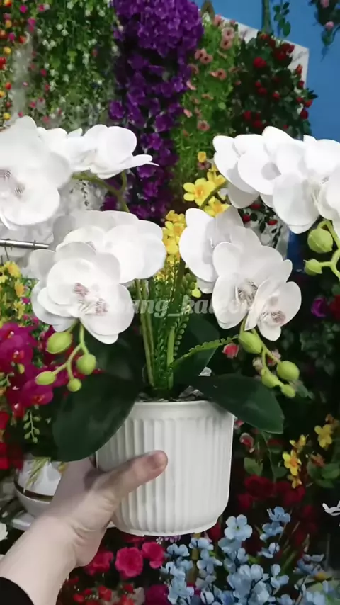 Bunga Anggrek 4 cabang satu set dengan pot#bungaanggreklatex#bungahias#bungamejasudut#bungamejatamu#ikaleena