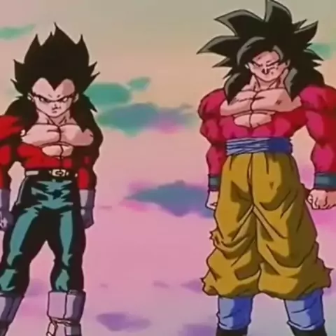 Vegeta SSJ4 e Goku SSJ4 demostram seus poderes