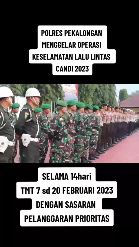 Kapolres Pekalongan Pimpin Apel Gelar Pasukan Ops Keselamatan Lalu Lintas Candi 2023 Polres Pekalongan – Kapolres Pekalongan AKBP Dr. Arief fajar Satria, S.H., S.I.K., M.H memimpin apel gelar pasukan yang dilaksanakan di halaman Mapolres, Selasa (07/02)#polri#polripresisi#polisiindonesia#polisilalulintas#operasikepolisian#operasikeselamatan#stoppelanggaran#tertiblalulintas#keselamatan#keselamatanlalulintas#videopolisi#polrespekalongan#pekalongan#kajen#pekalonganinfo#beritapekalongan1#kajenhits#...