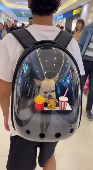 Meu cachorro s贸 queria saborear um lanche do McDonald's na mochila e virou o acontecimento do dia! 馃崝馃惗