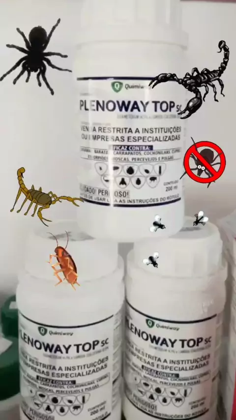 Plenoway Top Sc 200ml é um produto elaborado com THIAMETOXAM e LAMBDA-CIALOTRINA, eficaz no controle de Aranhas (Loxosceles sp), Baratas (Periplaneta americana e Blatella germanica), Carrapatos (Rhipicephalus sanguineus), Cochonilhas (Orthezia praelonga), Cupins de Solo (Nasutitermes sp e Coptotermes gestroi), Escorpiões (Tityus bahiensis), Moscas (Musca domestica), Percevejos de cama (Cimex lectularius) e Pulgas (Ctenocephalides canis) em construções e pós construções de imóveis residenciais