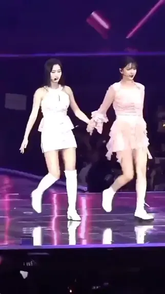 O palco estava muito escorregadio neste dia, as meninas quase caíram, várias vezes; Nesse take a Jeongyeon deu a mão para a Momo se apoiar. #twice #kpop #girlgroup