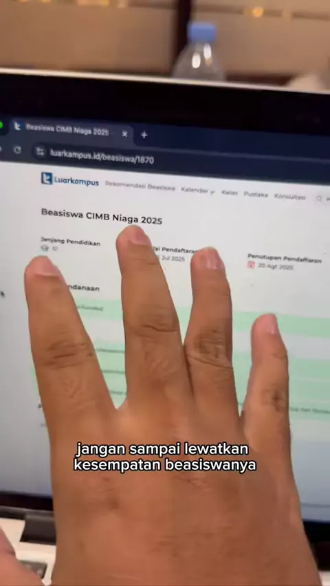 πBEASISWA CIMB NIAGA 2025 - UNTUK MAHASISWA S1 DI SELURUH INDONESIA Beasiswa CIMB Niaga 2025 diselenggarakan oleh CIMB Niaga bagi mahasiswa aktif semester 5 di seluruh Indonesia π π΅ ππππ¨π£ππ‘ ππππ¦ππ¦πͺπ: 1. Biaya kuliah & operasional pendidikan selama 4 semester 2. Fasilitas penunjang pendidikan (laptop, dll) 3. Biaya penyusunan skripsi dan pengembangan diri (les bahasa, public speaking, dll) Link Bimbingan : https://luarkampus.id/kelas/41 Link Pendaftaran: https://luarkampus.id/...