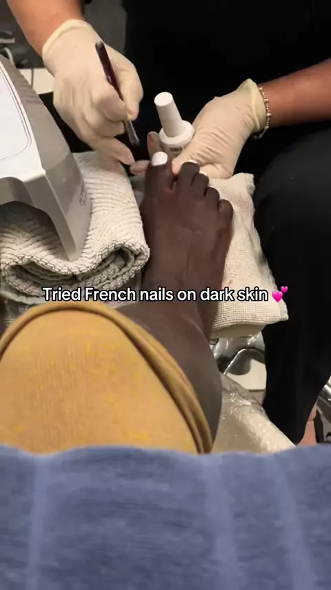 She was stressed doing this tip π I loved them though#nails#nailsdarkskin#frenchtipnails#classicnails