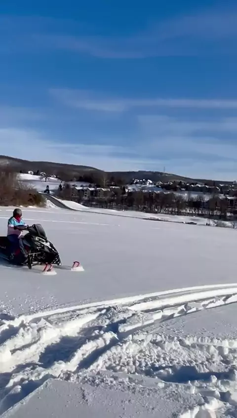 “Frio lá fora, diversão garantida! ❄️🏍️ Curtindo a neve em uma snowmobile! 🇧🇷🇺🇸”