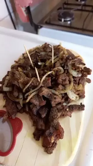 Petisco de file de carne com cebola no capricho π