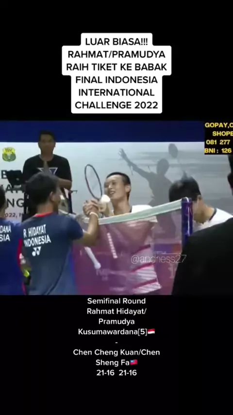 KEREEENNN BANGETT!!! SELAMAT RAHMAT/PRAMUDYA..GOOD LUCK FOR FINAL💪🏻🔥#FlexEveryAngle#AQUADULU#indonesiainternationalchallange2022#rahmathidayat#pramudyakusumawardana##dongggggggg#badmintonindonesia