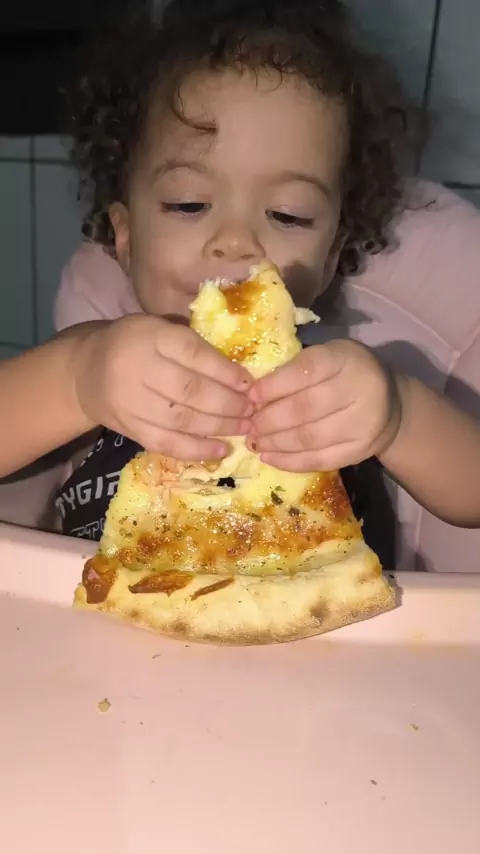 Lívinha comendo pizza de mussarela
