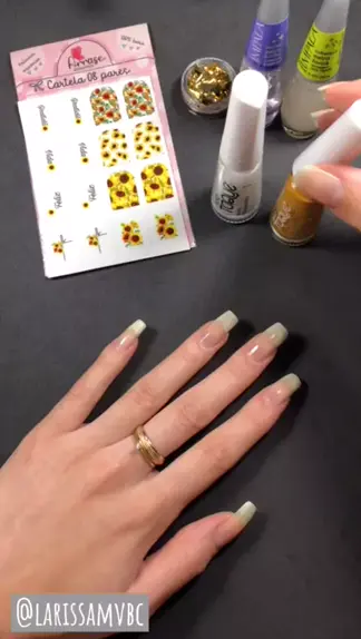 Esmaltação com girassol e folha de ouro 🌻✨ #unhas #manicure #nailart #unhasnaturais #amei