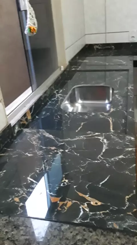 pia de cozinha junto fogão cooktop feita de porcelanato top demais