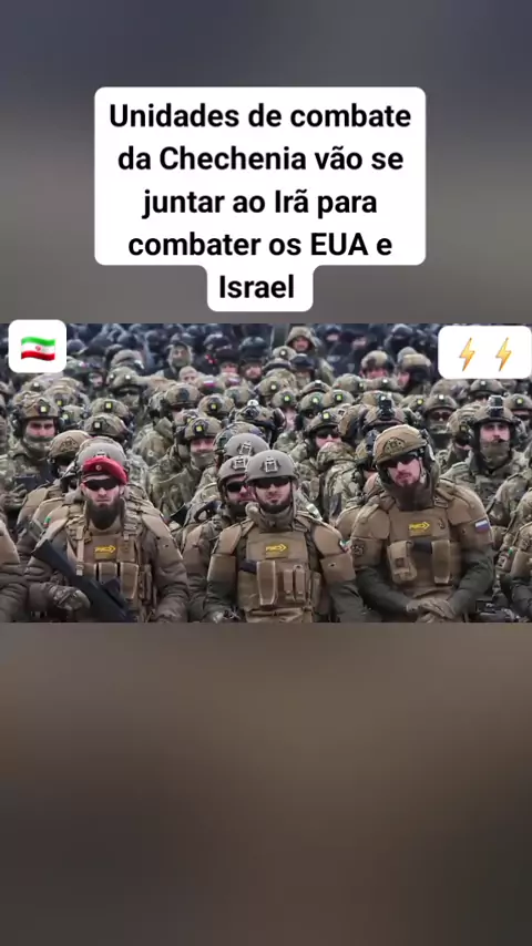 Unidade de combate chechenas russas declaram oficialmente que vão deslocar-se para o Irã e lutar ao lado das forças iranianas se os EUA lançarem uma invasão terrestre. Eles estao a enquadrá-lo abertamente como uma jihad sagrada contra o poder americano. O conflito está a expandir-se globalmente.